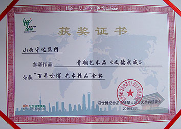 榮獲"百年世博?藝術(shù)精品"金獎
