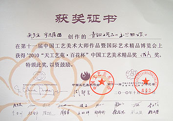 榮獲"天工藝苑?百花杯" 中國(guó)工藝美術(shù)精品獎(jiǎng)優(yōu)秀獎(jiǎng)