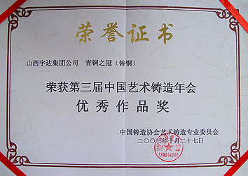 榮獲第三屆中國(guó)藝術(shù)鑄造年會(huì)優(yōu)秀作品獎(jiǎng)