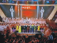中國電影金雞、百花獎頒獎晚會于2006年10月28日在杭州舉行,中央電視臺三頻道現(xiàn)場直播,山西宇達集團與中國電影界的深厚淵源,其公司名稱出現(xiàn)在鳴謝字幕上。圖為電視照片。
